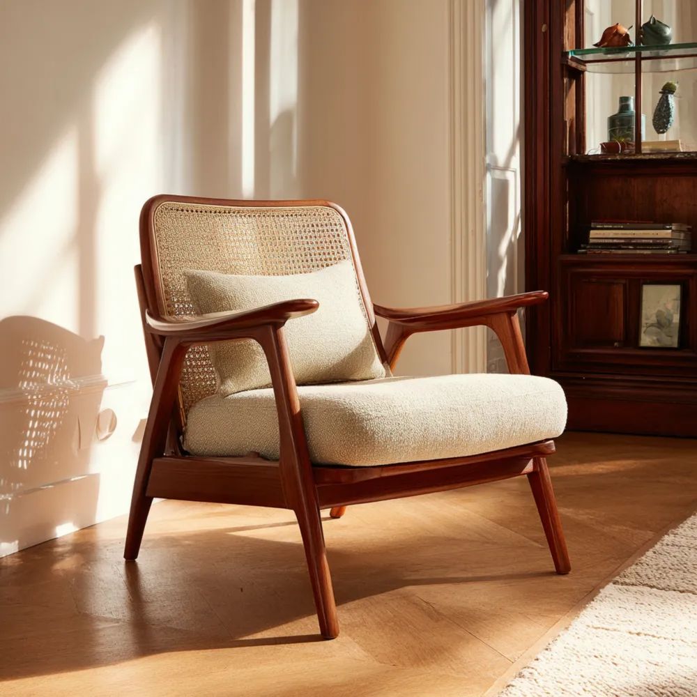 Das Sofa ist mit strapazierfähigem beigem Stoff gepolstert und verspricht Langlebigkeit und Komfort. Es verfügt über eine solide Holzrahmenkonstruktion.